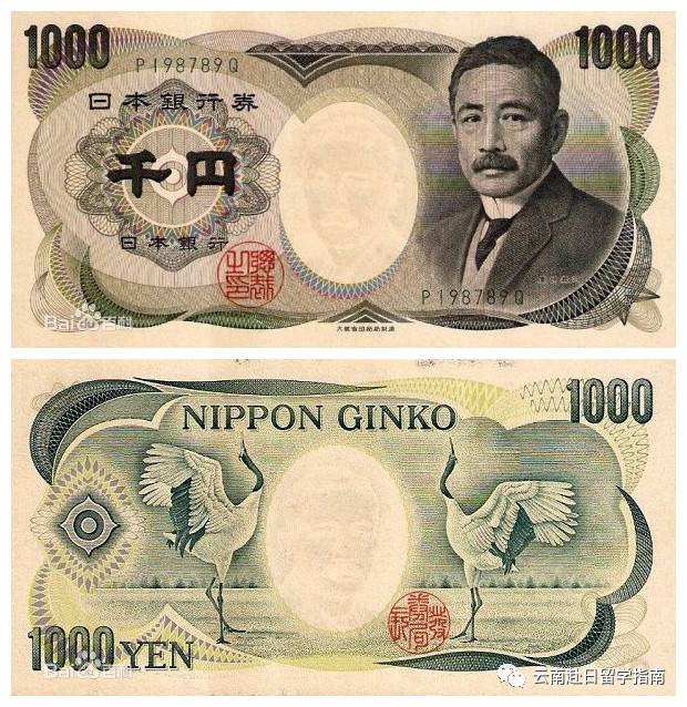 正面:日本小說家夏目漱石 背面:兩只仙鶴