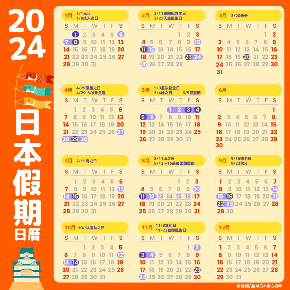 2025年日本紅日子日歷表(日本假期全年祝日完整版)