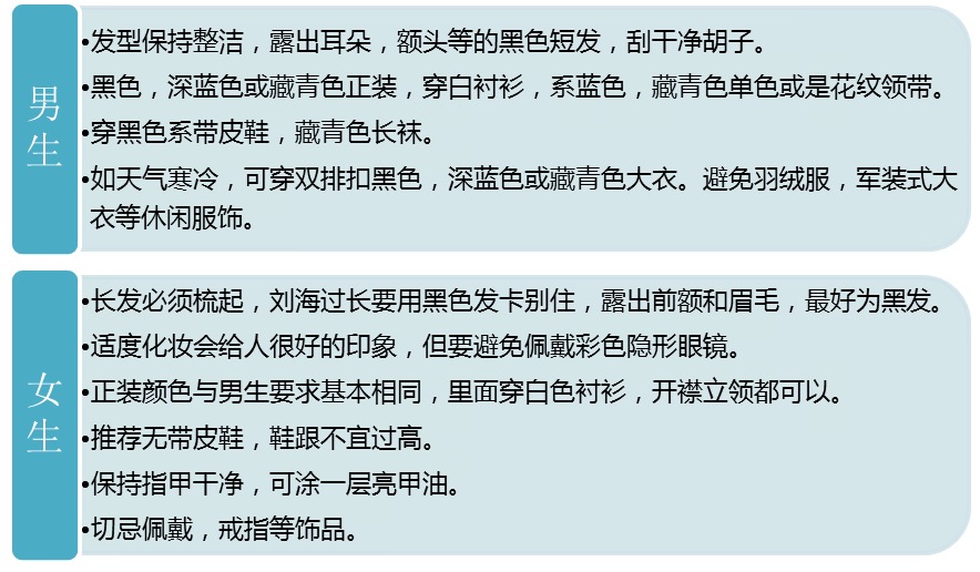 面試攜帶物品:紙筆,日程手賬,簡歷和ES,手機,手表,折疊傘,現(xiàn)金,絲襪(僅女生)。