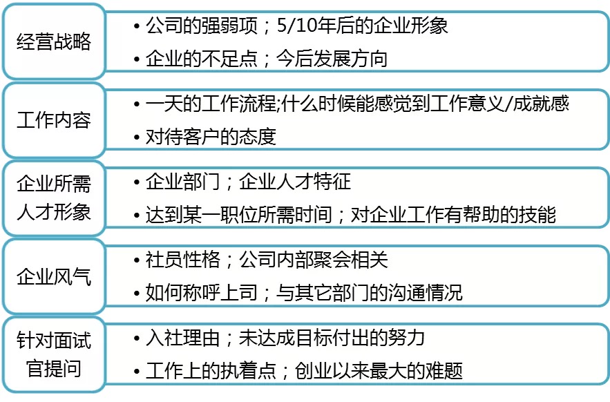 一般企業(yè)會通過ES中的幾個問題,對畢業(yè)生的品格,價值觀等進行考量,具體考察內(nèi)容,考察方式及應對策略如下圖所示: