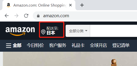 或者訪問亞馬遜國際站 https://www.amazon.com/ ,在logo右側,選擇配送至日本
