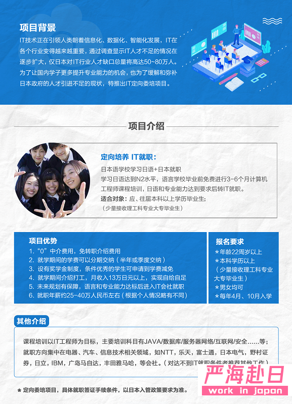 赴日IT定向委培就職移民項目